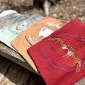 "重要保護生物 千葉県レッドリスト"に指定されている「アカギツネ」が刺繍で描かれています。暗いところでもよく見える縦長の瞳は猫のよう。優れた嗅覚に聴覚、泳ぎも得意で犬のよう。様々なことに長けたですが、千葉県で数を減らした理由は分かっていないのだそうです。