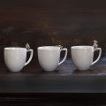 こちらは、ハンドルにピューターで作られたウサギが座っているデザインのマグカップ。こんなかわいいお顔で覗き込まれると、おとぎの国のアリスの世界に迷い込んでしまいそうですね。